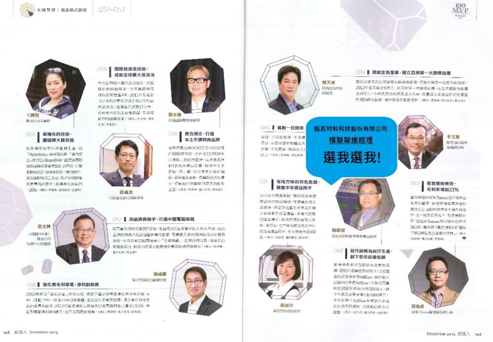恭喜總經理楊聯智先生獲選為百大MVP經理人, 並接受經理人月刊的報導