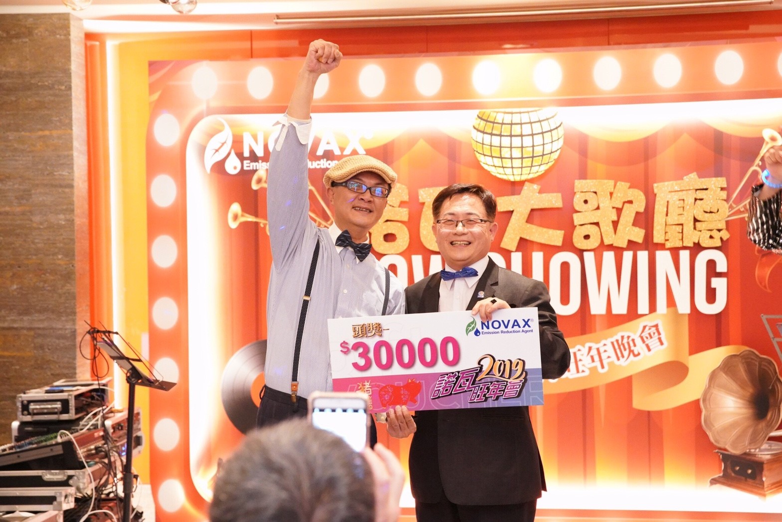 諾瓦於1/19日於尊爵飯店舉辨旺年會,今年主題是走「復古風」,不僅會場佈置流露濃濃的復古擺設和主題設計,同仁們也紛紛拿出衣櫃內的壓箱寶來精心打扮,穿上高腰喇叭褲、格紋套裝、花襯衫,再加上復古音樂,時光彷彿回到50年代大歌廳。董事長楊聯智則是以一身貓王裝驚豔四座,整個氛圍彷彿回到五、六〇年代,會場閃光燈不間斷,都是為了拍下這珍貴的復古打扮。