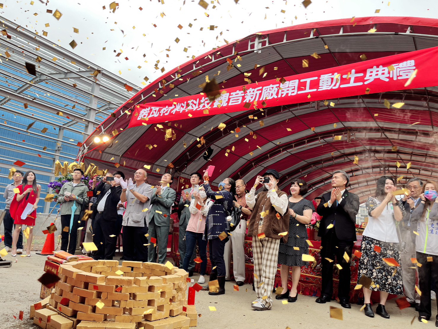 典禮上也邀請了桃園市經濟發展局張誠局長蒞臨動土典禮現場,桃園市工商發展投資策進會陳萬得副執行長也代表市長出席共同為新廠祈福起鏟。