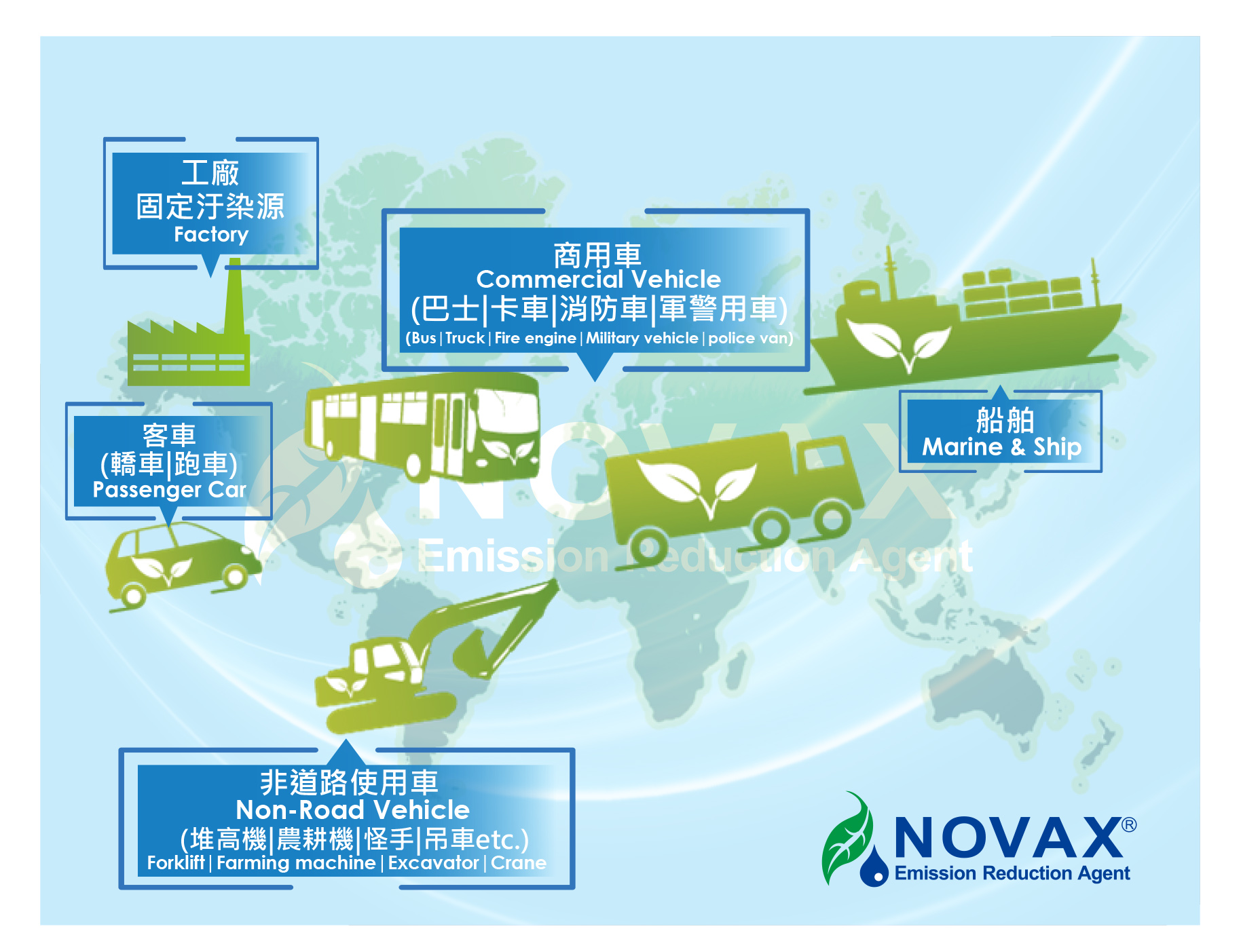 諾瓦為全球觸媒還原劑(AdBlue®)的主要供應商之一,同時也提供火力發電、廢棄物焚化爐,化學工業製程、及柴油引擎等SCR / SNCR設備專用的尿素及尿素溶液產品,從船用級、汽車級到工業級等,各種不同等級的尿素產品一應俱全。諾瓦除了擁有足夠產能來服務遍佈全球的廣大客戶,滿足「固定污染源」與「移動污染源」的市場需求外,更是不斷致力於提升環境品質,期許能夠為台灣綠色企業樹立新典範。