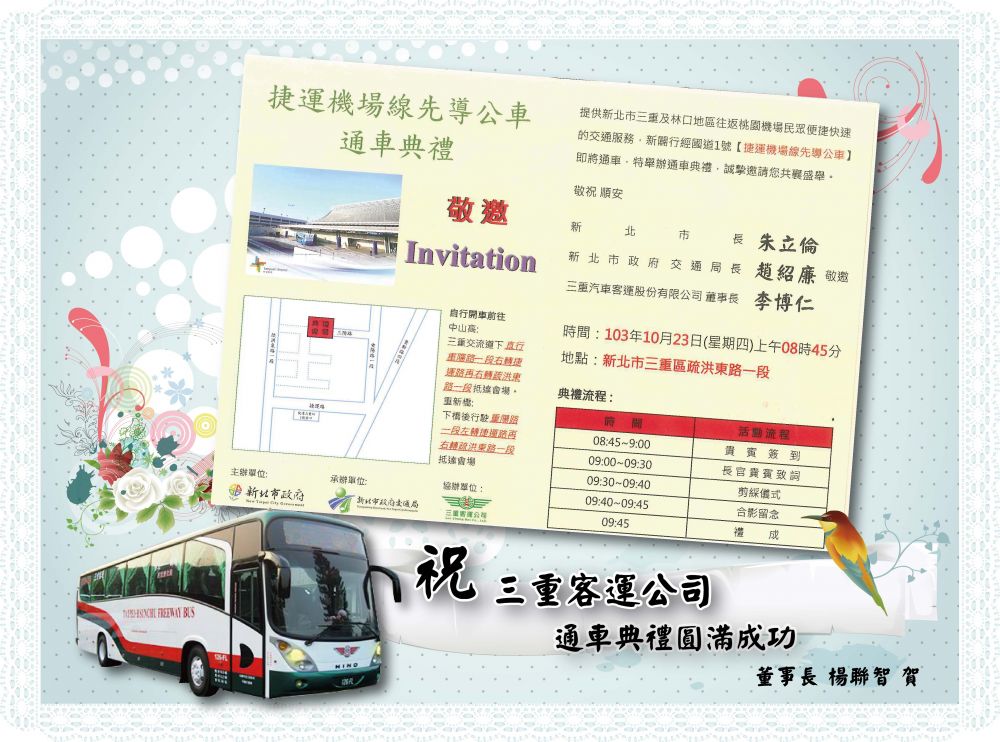 祝 三重汽車客運 捷運機場先導公車 通車典禮 圓滿成功