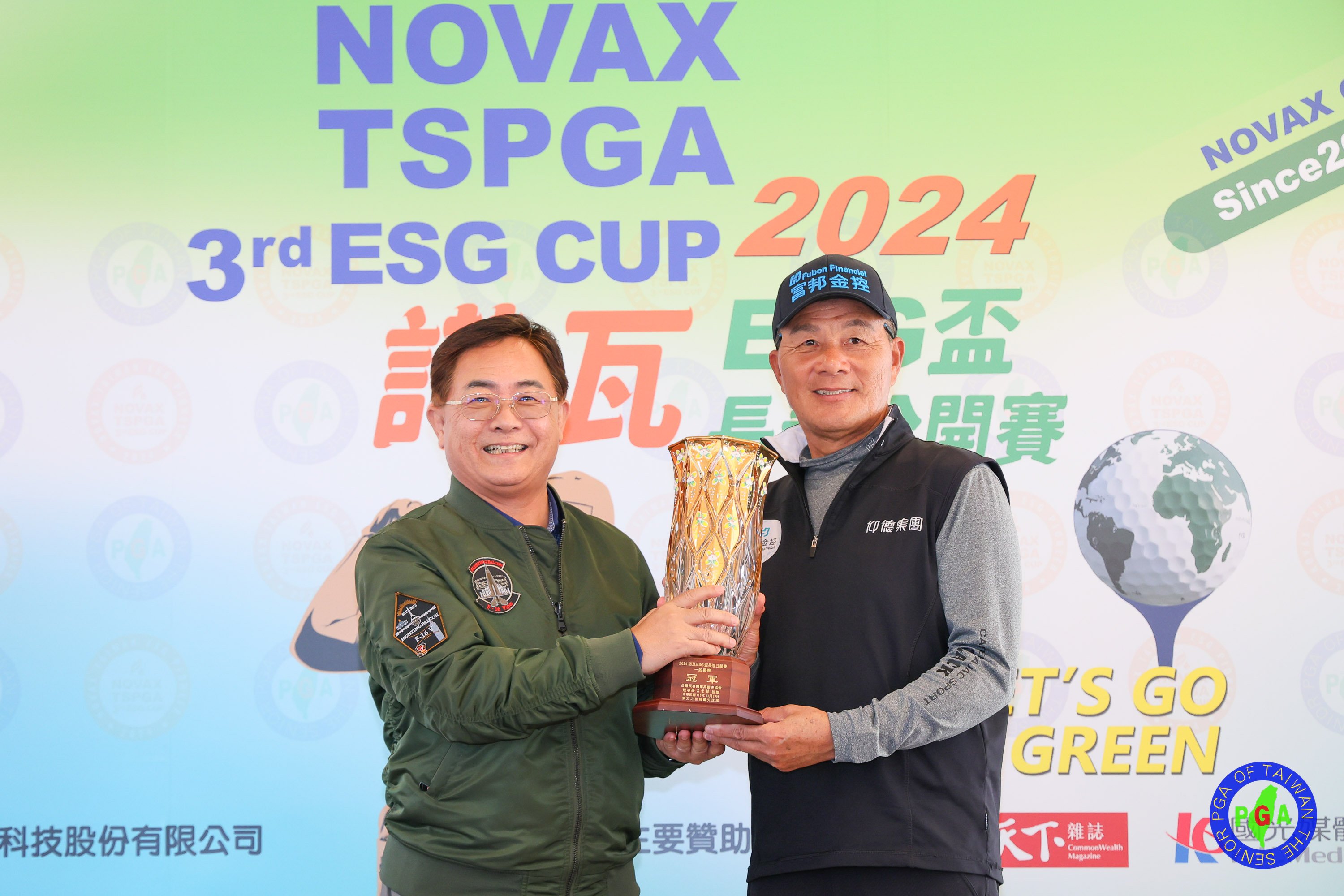首度贊助冠名的諾瓦ESG盃長春公開賽,今天(29日)在東方之星球場完美畫下句點,名將「蘆荀」盧建順繼首輪揮出68桿(-4)後,第二回合在不小風勢中,穩穩揮出4鳥2柏忌70桿,以領先3桿的總桿138桿(-6),勇奪冠軍與本季第3冠,52年次呂文德,連續兩天揮出低於標準桿71、70桿,以141桿(-3)獲得第二位。諾瓦材料科技公司董事長楊聯智頒獎典禮致詞時承諾,希望明年擴大比賽規模。