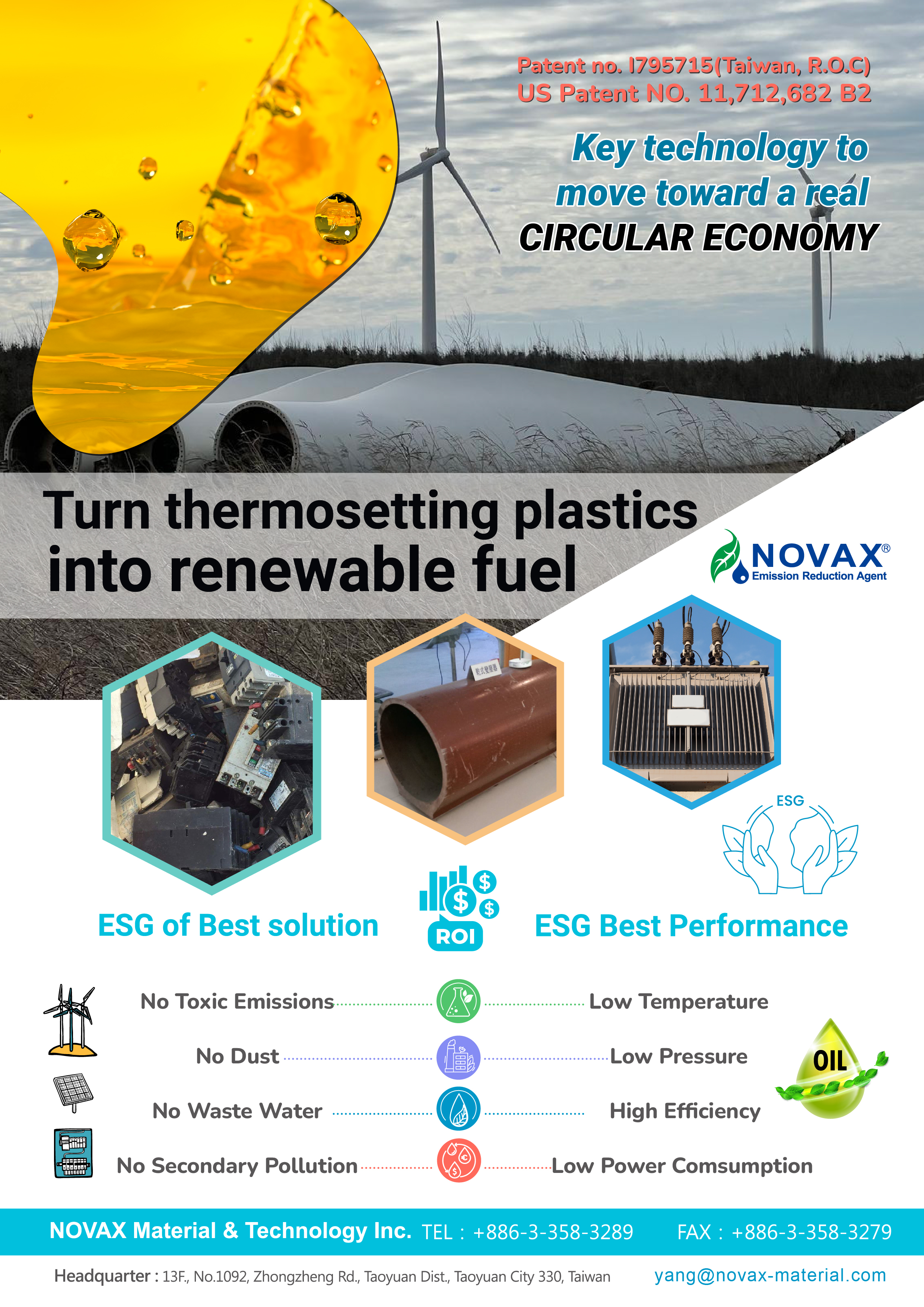 諾瓦之熱裂解爐是以裂解熱固型塑膠作為再利用油品為目的,可熱裂解的材料為電木、橡膠、絕緣材料、纜線外皮等熱固型塑膠材料,包括酚醛樹脂、環氧樹脂、聚酯樹脂、聚氨酯及不飽和聚酯樹酯等。